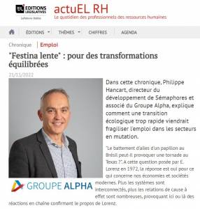 Ce mois-ci, retrouvez la chronique intitulée “”Festina lente” : pour des transformations équilibrées”, de Philippe Hancart, Directeur du développement de Sémaphores, associé Groupe ALPHA.